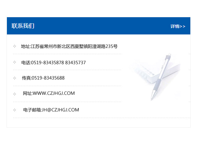 地址:常州市新北區友邦商務大廈1幢16、17層  電話:0519-85101652  傳真:0519-85112595  郵編:213022  網址:www.cz-jiayue_cn.lantiansq.com  郵箱:xiajifengaa@163.com